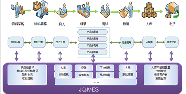 品質管理:MES跟蹤原材料進廠到成品入庫的整個生產流程,對產品原料、生產設備、操作人員、工序批次等數據實時采集,為產品的使用、改進設計及質量控制提供依據;根據檢測結果確定產品問題、提供相應的決策支持。