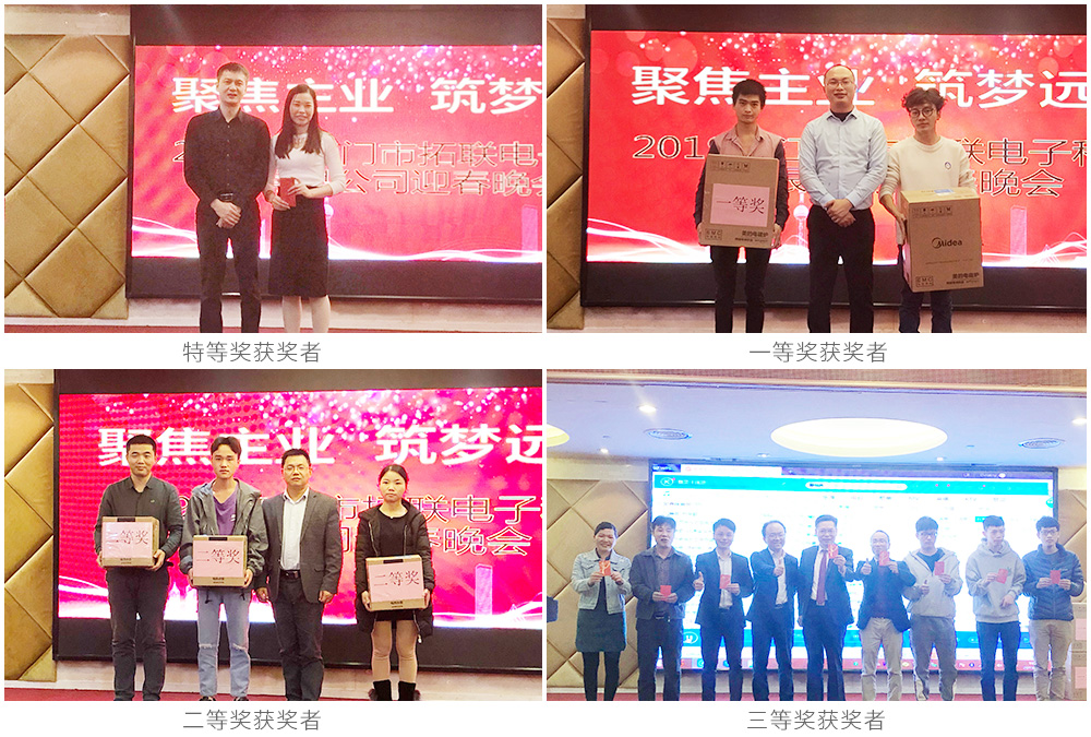 同時,拓聯電子還在晚會中準備抽獎活動,分別為特等獎、一等獎至五等獎、正業科技贊助獎等多個獎項,為員工們送去了禮品和驚喜。