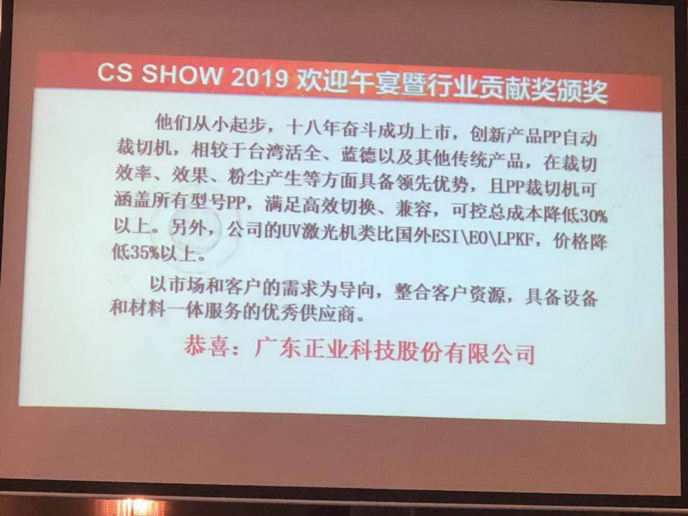 8月28日,CS SHOW 2019歡迎午宴暨行業貢獻獎典禮隆重舉行,屆時對獲得PCB行業貢獻獎企業稱號的分別授予相關獎牌和獎狀。在此次頒獎典禮中,正業科技榮獲了2019年(第一屆)電路板行業優秀貢獻獎,集團副總裁徐地明代表公司上臺領獎。