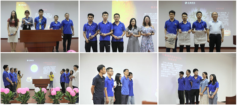 2019911日晚,“中秋共團圓,正業一家親”暨2019年度第三季度職工生日活動在智能制造中心舉行,壽星們以及其他職工們歡聚一堂,玩玩游戲,吃吃甜品,熱熱鬧鬧慶中秋,賀生辰。