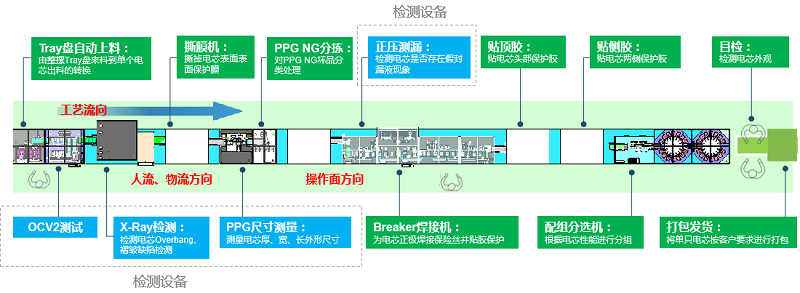 作為智能制造解決方案提供商,正業(yè)科技專業(yè)打造先進(jìn)的電芯自動(dòng)裝配線,主要適用于3C類電池電芯自動(dòng)裝配、檢測,包含上料、OCV2檢測、X-RAY檢測、撕膜、PPG尺寸測量、PPG NG分揀、正壓測漏、breaker焊接、貼頂膠、貼側(cè)膠、配組分選等功能模塊。