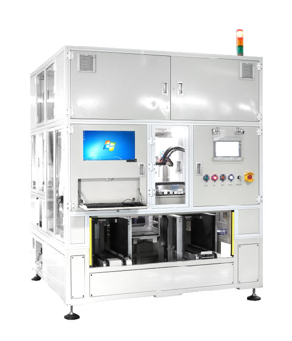 一種測試電池IV、開路電壓、內(nèi)阻、溫度、條碼掃描、極耳整形功能及電池自動(dòng)輸出的全自動(dòng)化測試設(shè)備,采用四軸機(jī)器人+CCD定位技術(shù)+伺服+電池測試儀等方式,實(shí)現(xiàn)換型時(shí)間短、維護(hù)方便、操作簡單。