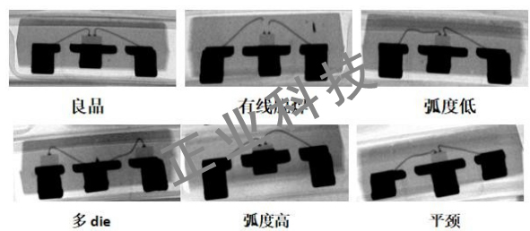 有線脫焊、塌線、跪線、弧度低、斷頸、平頸、多die、弧度高、多余線、重復(fù)焊線、無(wú)線脫焊、頸部受損、膠水厚、線尾長(zhǎng)、球厚/球大/球畸形等。