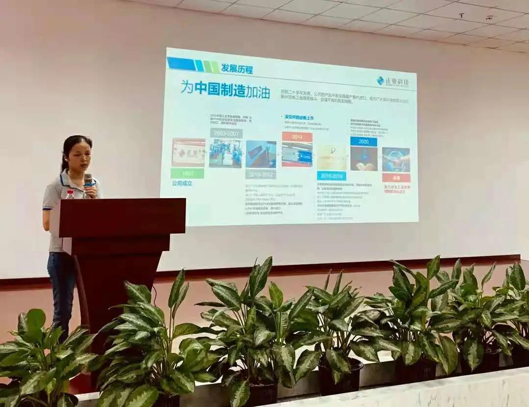 正業(yè)科技總裁助理黃洪輝帶領(lǐng)與會(huì)人員參觀正業(yè)科技展廳及研發(fā)生產(chǎn)車間,介紹公司的發(fā)展情況,以及在數(shù)字化轉(zhuǎn)型方面的布局及實(shí)施情況。