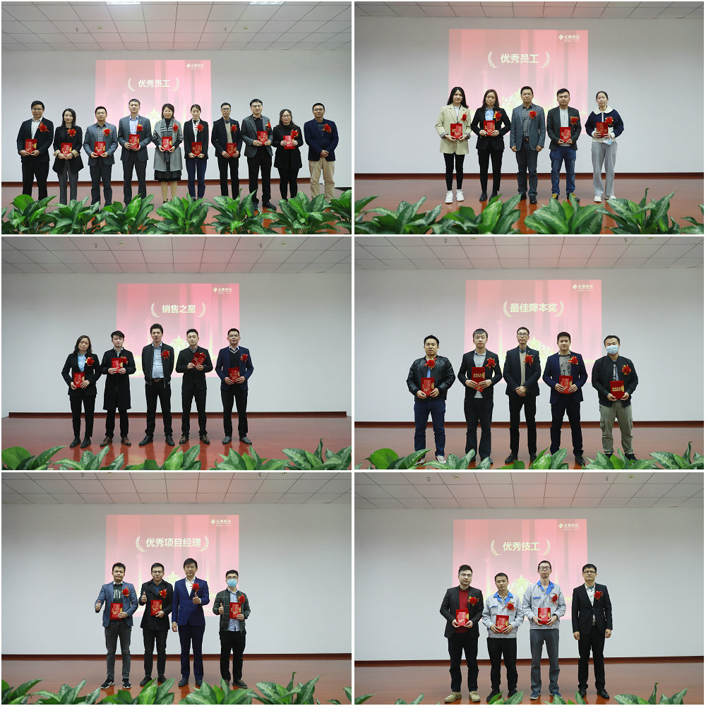 會議現場公布了“優秀員工”獎、“銷售之星”獎、“最佳降本”獎、“優秀項目經理”獎、“優秀技工”獎、“優秀科技工作者”獎、“最佳質量”獎、“優秀部門”獎、“優秀總經理”獎的獲獎名單,這些杰出的部門和個人,為公司長遠發展做出突出貢獻,在全場熱烈的掌聲中被授予殊榮。