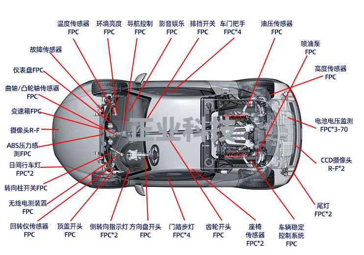 整車FPC用量將超過100片,動力電池需求FPC數量與面積遠超原有整車車載FPC,新能源汽車的大發展帶動車載動力電池用FPC需求大幅增長。