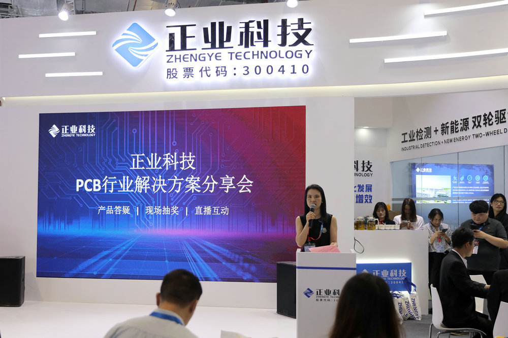 展會期間,正業科技精心籌備了多場次PCB行業解決方案分享會,線上同步直播,為現場觀眾呈現了一場PCB行業的饕餮盛宴,分別帶來了字符噴印、耐離子遷移覆蓋膜、PCB分板&X-Ray上料自動化、激光加熱半固化片自動化裁切、全尺寸快速測量、鍍層銅自動檢測、PCB過濾、語音程控-10/20/30G帶寬高端TDR特性阻抗測試等解決方案的專題演講,充分詮釋了正業科技在PCB行業的匠心智造。希望通過這些解決方案的引入和應用幫助業界同仁解決產品在設計和制造中遇到的問題,共同推動PCB行業實現高質量發展。