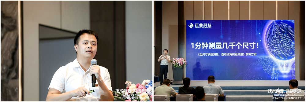 緊接著,正業科技分別帶來了鍍層銅自動檢測、全尺寸快速測量、字符噴印、PCB分板&X-Ray上料自動化、激光加熱半固化片自動化裁切、數字化助力PCB行業轉型升級、高端TDR特性阻抗測試儀等解決方案的專題演講,希望通過這些解決方案的引入和應用幫助業界同仁解決產品在設計和制造中遇到的問題,提質、降本、增效,共同推動PCB產業的持續發展與升級。