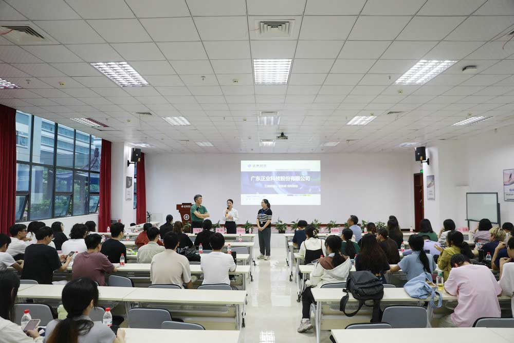 東莞理工學(xué)院師生一行率先參觀了正業(yè)科技展廳,總裁辦滕娟主任為大家詳細介紹了正業(yè)科技發(fā)展歷程、行業(yè)布局、重點產(chǎn)品以及創(chuàng)新技術(shù)等情況。隨后,大家來到生產(chǎn)車間,了解到了正業(yè)科技設(shè)備的先進性及生產(chǎn)工藝的創(chuàng)新性。