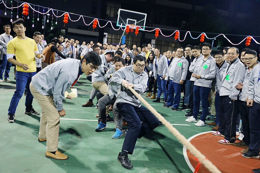 第一個游戲環節是拔河比賽。共有6支隊伍參加比賽,最后由技術中心/中央研究院/財務中心組成的牛牛隊獲得了拔河比賽的冠軍。