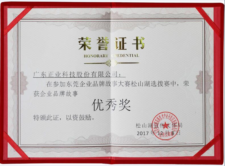 正業(yè)科技市場中心撰寫的《風(fēng)雨同舟攜手廿載,匠心智造鑄就未來》,以正業(yè)科技20年歷程為藍(lán)本,講述正業(yè)科技自主創(chuàng)新走民族品牌之路的故事,榮獲“東莞企業(yè)品牌故事大賽”松山湖選拔賽優(yōu)秀獎。