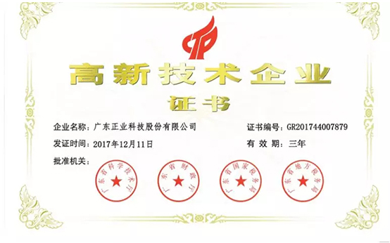 廣東正業(yè)科技股份有限公司憑借雄厚的核心技術(shù)實(shí)力再次榮獲由廣東省科學(xué)技術(shù)廳、廣東省財(cái)政廳、廣東省國(guó)家稅務(wù)局、廣東省地方稅務(wù)局聯(lián)合頒發(fā)的高新技術(shù)企業(yè)證書。