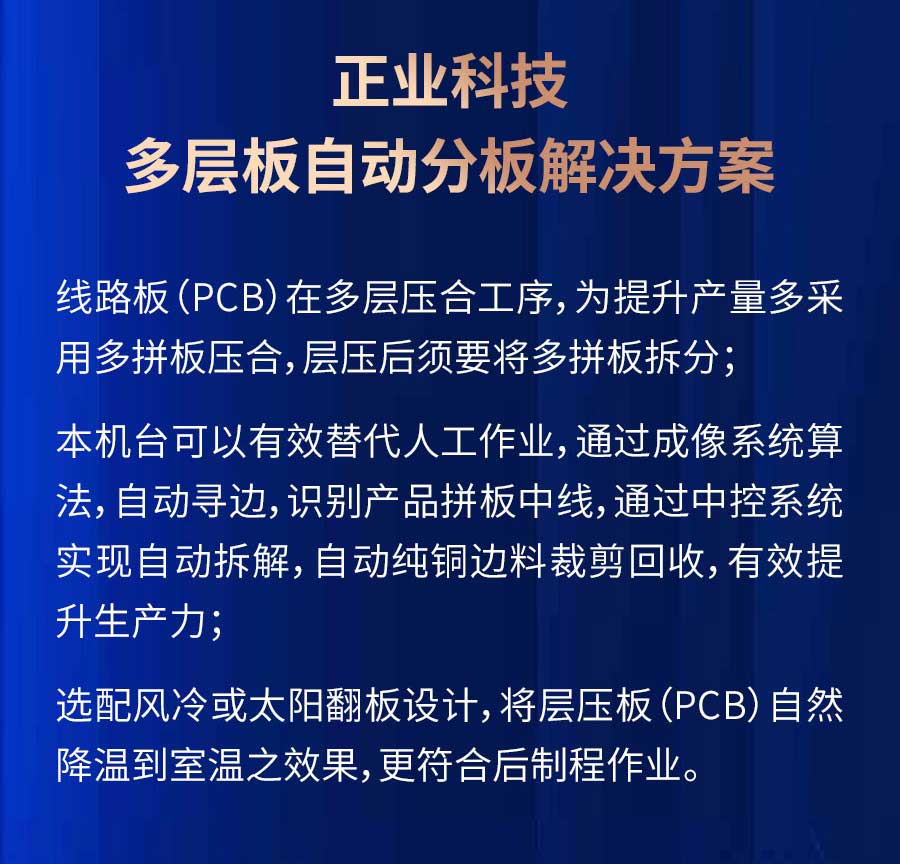當(dāng)前位置:首頁>產(chǎn)品中心>解決方案>PCB行業(yè)>正業(yè)科技解鎖PCB生產(chǎn)新模式,高效分板線助力產(chǎn)業(yè)升級(jí)